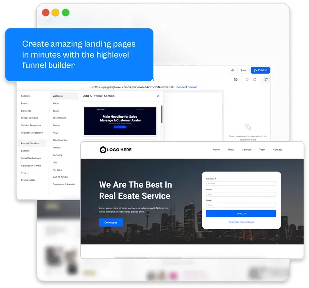 Our intuitive platform allows you to create full featured websites with custom menus. Create high-performing and captivating landing pages all in one place!