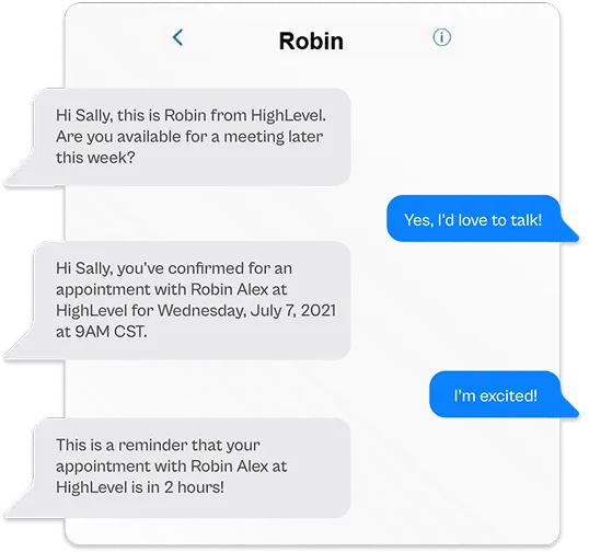 Create text conversations with the goal of placing booked appointments on calendars WITHOUT any human interaction.