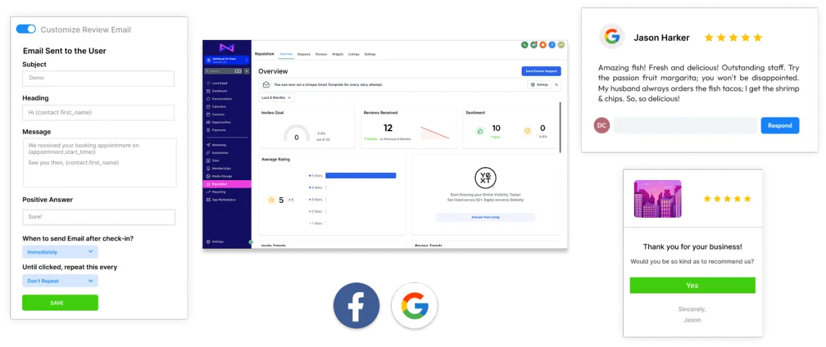 Track and enhance your business’s online reputation with tools for collecting reviews and responding to feedback.